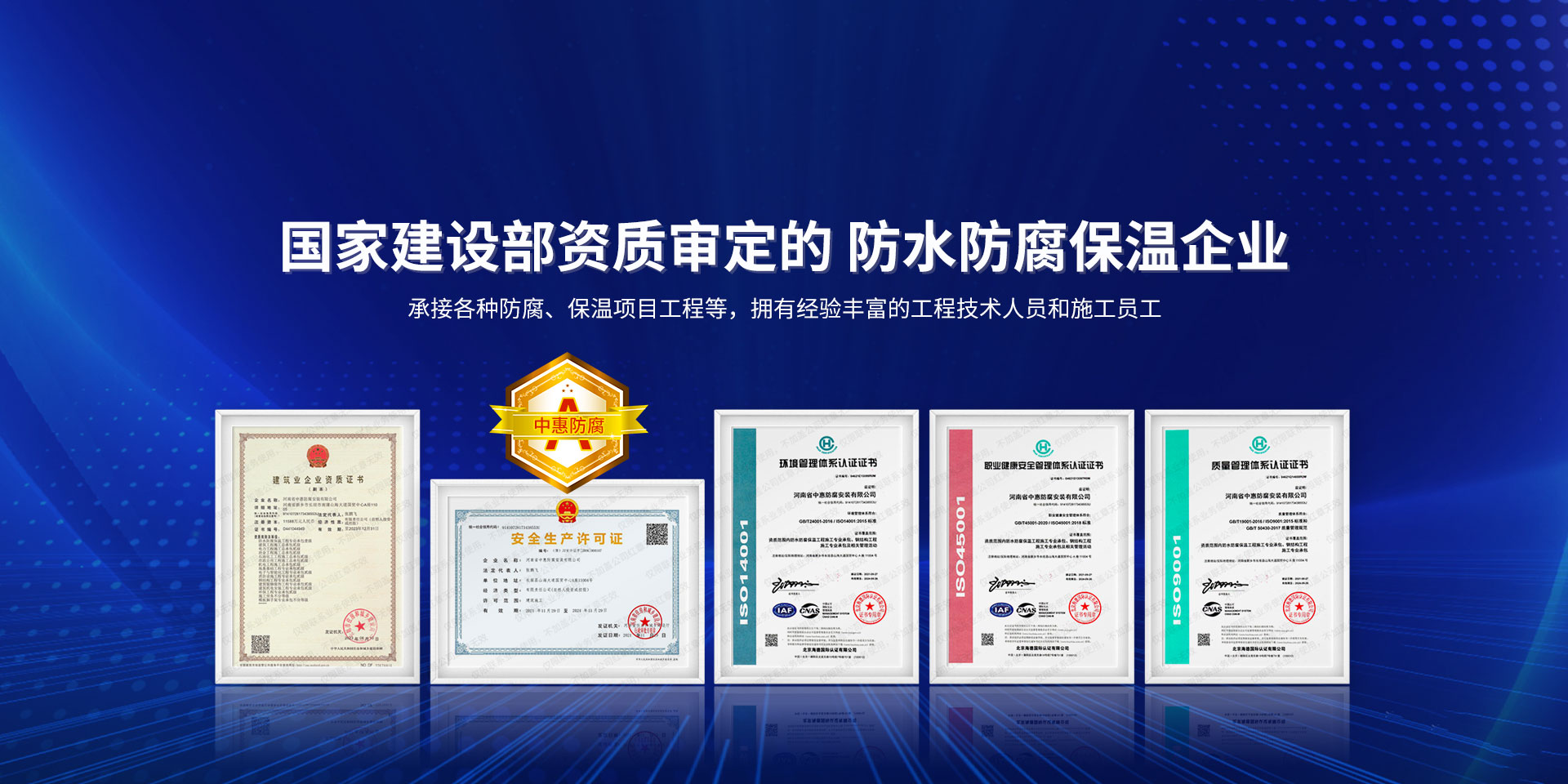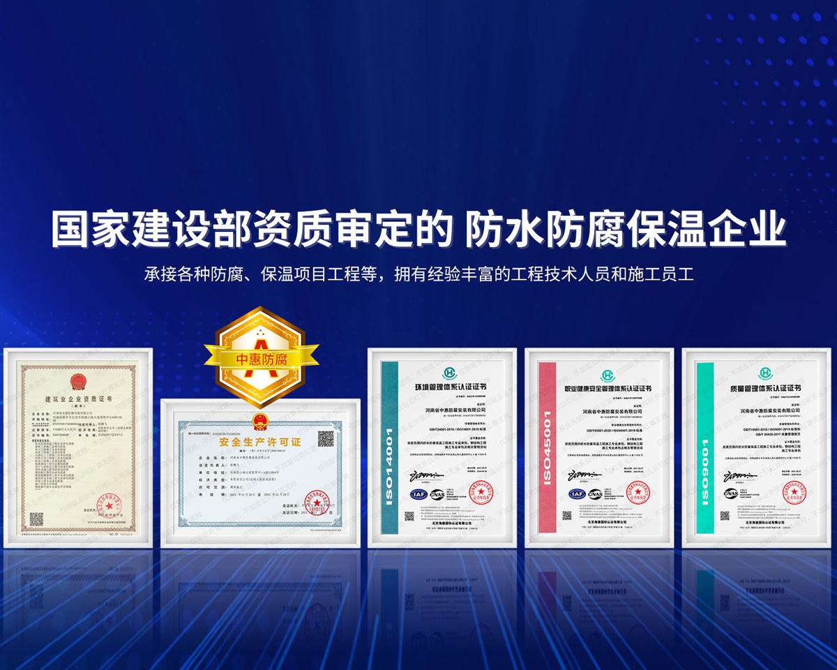 公司經營范圍:防水防腐保溫工程;消防設施工程;建筑裝修裝飾工程;建筑機電安裝工程;電力工程;建筑工程;石油化工工程;工業清洗工程;油罐清洗工程;鋼結構工程;環保工程;模板腳手架工程;電纜防火封堵、防污閃噴涂、外墻外保溫工程;各類施工勞務作業;設備維修、船舶鉚焊、涂裝;電力工程材料、建材、防水材料、防火材料、防腐保溫材料銷售,并相繼通過了GB/T19001-2008idtISO9001:2008GB/T50430-2007質量管理體系認證證書。GB/T24001-2004idtISO14001:2004環境管理體系認證證書。GB/T28001-2011idtOHSAS18001:2007職業健康安全管理體系認證證書。公司是中國防腐蝕于防護協會、中國施工企業管理協會、電力協會和中國鋼結構防水協會會員單位。 公司的經營業務涵蓋了石油、化工、電力、冶金、煤炭、船舶、國防、燃氣、水利、環保、交通運輸、航空及國防軍工和輕紡市政等行業的防腐保溫絕熱設備。鋼結構安裝、防火、防水、金屬噴鍍、聚脲噴繪、陰極保護、防滲透堵漏、玻璃鋼及各種磚版材料襯里、橡膠襯里、煙氣硫和耐酸溶劑腐蝕等工程施工。公司連續十年榮獲“省市先進施工企業”“安全生產先進單位”“重合同,守信用企業”和“AA***資質企業”的稱號。2000年被命名為市級文明單位,2002年被國家工商行政管理局命名為“重合同,守信用的企業”、被中國工業防腐蝕技術協會命名為“防腐蝕企業,能源節約及環境保護領域有豐富的經驗和***的業績。工程一次交驗合格率100%。其中攀枝花鋼鐵公司煉鐵廠四號高爐及熱風爐防腐工程、上海寶鋼公司煤氣柜防腐工程、撫順石油一廠裝置防腐項目、齊魯石化公司稀烴廠高塔防腐工程、吉林化學工業公司煉油廠油罐防腐工程、天津石化熱電廠六號爐頂棚聯絡管保溫工程、大慶油田(太倉)力神泵業工程、中國化學工程第十一建設工程、中原油田勘探局工程、中國石化銷售有限公司華北分部、魯皖輸油管道工程、貴州開磷息烽合成氨工程、陜西黃陵煤化工程、中國石油天然氣西部管道塔里木輸油工程、邯鋼集團邯寶鋼鐵公司煉鐵工程、德州供電工程、吉寶(南通)船廠工程,偃師華潤熱力工程、鄭州熱力總公司。 河南省中惠防腐安裝有限公司愿以豐富的施工經驗,***的技術,***的設備,***的管理,***的服務,竭誠為國內外廣大的用戶提供***滿意、******的工程作品。 我公司愿與國內外同仁一道,團結協作,共同推進防腐蝕行業發展! 公司地址:河南省長垣縣建設路北段360號 固定電話:0373-8866488 郵編:453400 網址:http://www_zhff_com_cn.shdianyongmc.com